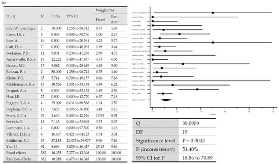 - Higgins, J.P.; Thompson, S.G.; Deeks, J.J.; Altman, D.G. Measuring inconsistency in meta-analyses. BMJ 2003, 327, 557–560. [Google Scholar] [CrossRef] [PubMed]