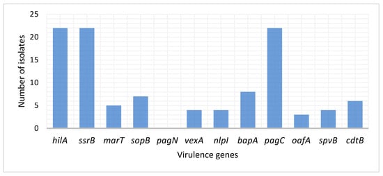 2.2. Detection of Virulence Genes in S. Typhimurium and S. Enteritidis