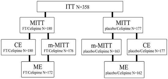 In the period from August 2021 to January 2023, 358 patients were randomized, of which 357 received therapy with the investigational drug (Figure 1). The median duration of treatment was 7.0 days, and no deaths were observed. In the FT/Cefepime group, 1.1% (2 out of 180) of patients did not complete treatment with the study drug, compared to 1.7% (3 out of 177) in the placebo/Cefepime group.