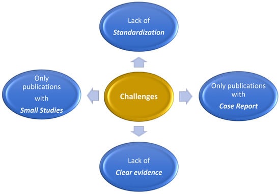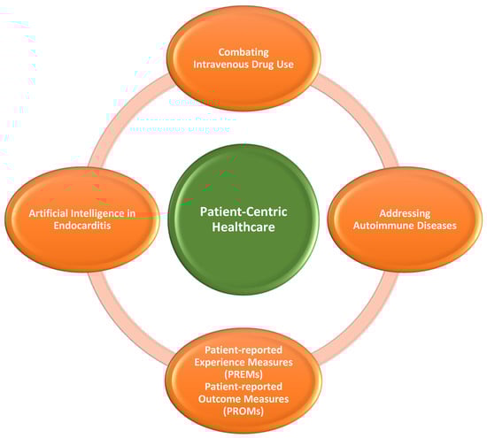 After a thorough review and assessment of 74 articles, we identified and included a subset of 31 papers that were directly relevant to our research (see Table 1). These selected studies provided valuable insights into the diagnosis and management of IE-associated septic embolism causing AMI, presenting current treatment methods in these cases, together with their challenges. These challenges are summarized schematically in Figure 1. The future directions that require additional work to reduce the burden of this infectious disease are listed in Figure 2.