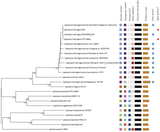 - Senavirathna, I.; Jayasundara, D.; Warnasekara, J.; Matthias, M.A.; Vinetz, J.M.; Agampodi, S. Complete genome sequences of twelve strains of Leptospira interrogans isolated from humans in Sri Lanka. Infect. Genet. Evol. 2023, 113, 105462. [Google Scholar] [CrossRef] [PubMed]