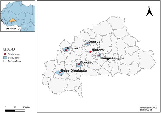 - Traoré, O. Prévalence de Quelques Bactéries Entéropathogenes dans les Eaux de Fontaines, des Puits, Canaux et des Barrages Couramment Utilisées à Ouagadougou, Mémore de DEA; Université de Ouagadougou: Ouagadougou, Burkina Faso, 2009; p. 55. [Google Scholar]