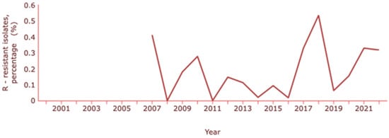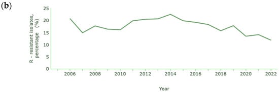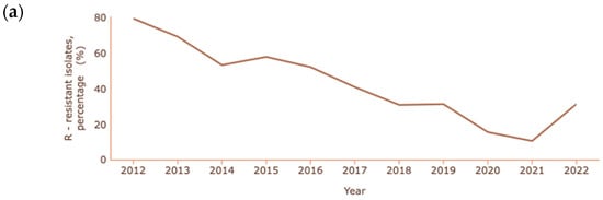 - European Centre for Disease Prevention and Control; World Health Organization. Antimicrobial Resistance Surveillance in Europe 2022–2020 Data; World Health Organization: Geneva, Switzerland; European Centre for Disease Prevention and Control: Solna, Sweden, 2022. [Google Scholar]