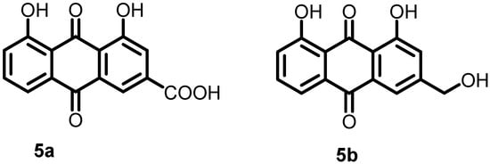 Chemical structures of the traditional Chinese medicine monomers rhein (5a) and aloe emodin (5b).
