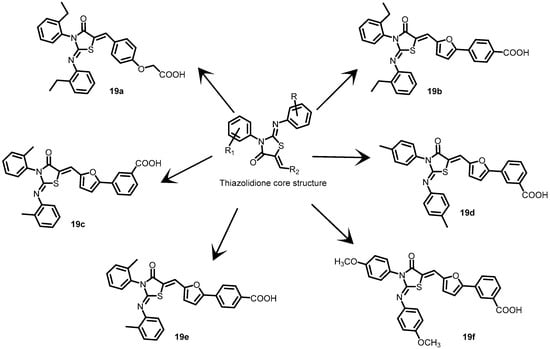 Chemical structures of thiazolidine derivatives 19a–19f.