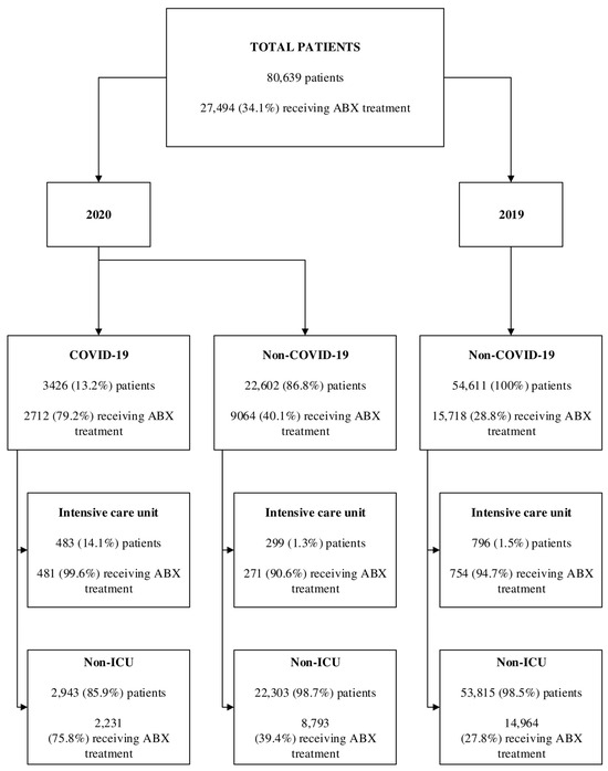- Wang, T.; Shen, L.; Yin, J.; Zhou, L.; Sun, Q. Antibiotic use in township hospitals during the COVID-19 pandemic in Shandong, China. Antimicrob. Resist. Infect. Control 2022, 11, 164. [Google Scholar] [CrossRef] [PubMed]