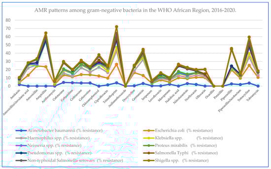 Percentage of AMR patterns among gram-negative bacteria in the WHO African Region, 2016–2020.