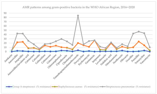 Percentage of AMR patterns among gram-positive bacteria in the WHO African Region, 2016–2020.