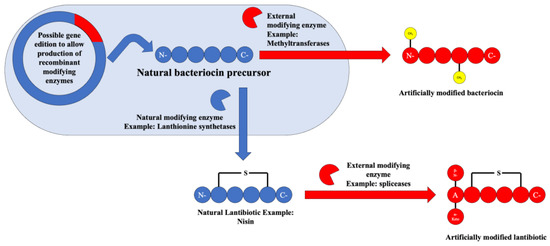 Following on to the future perspectives on the use of bacteriocins in the therapeutic and/or food preservation field, one of the most interesting, yet somewhat unexplored, possibilities lie in the artificial post-translation modifications that can be carried out on already discovered bacteriocins with the objective of improving their properties and efficacy.