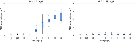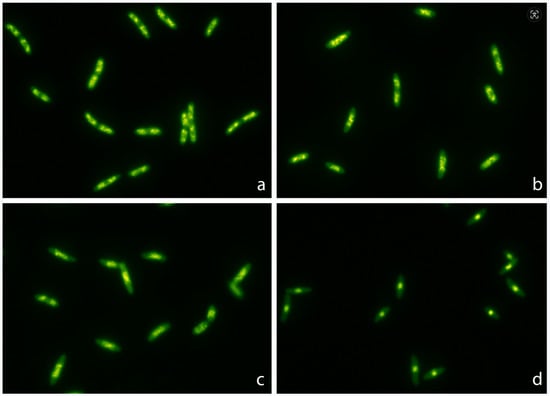 - Tamayo, M.; Santiso, R.; Gosalvez, J.; Bou, G.; Fernández, J.L. Rapid assessment of the effect of ciprofloxacin on chromosomal DNA from Escherichia coli using an in situ DNA fragmentation assay. BMC Microbiol. 2009, 9, 69. [Google Scholar] [CrossRef] [PubMed] [PubMed Central]