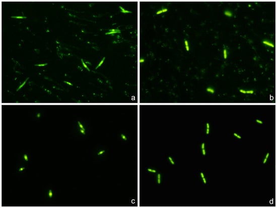 - Santiso, R.; Tamayo, M.; Gosálvez, J.; Bou, G.; Fernández, M.d.C.; Fernández, J.L. A rapid in situ procedure for determination of bacterial susceptibility or resistance to antibiotics that inhibit peptidoglycan biosynthesis. BMC Microbiol. 2011, 11, 191. [Google Scholar] [CrossRef] [PubMed] [PubMed Central]
