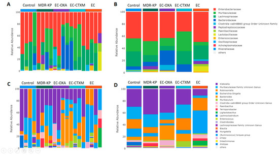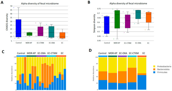 - Boyd, A.; El Dani, M.; Ajrouche, R.; Demontant, V.; Cheval, J.; Lacombe, K.; Cosson, G.; Rodriguez, C.; Pawlotsky, J.M.; Woerther, P.L.; et al. Gut microbiome diversity and composition in individuals with and without extended-spectrum beta-lactamase-producing Enterobacterales carriage: A matched case-control study in infectious diseases department. Clin. Microbiol. Infect. 2024. [Google Scholar] [CrossRef] [PubMed]