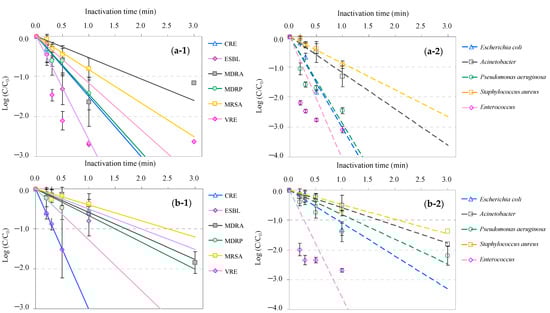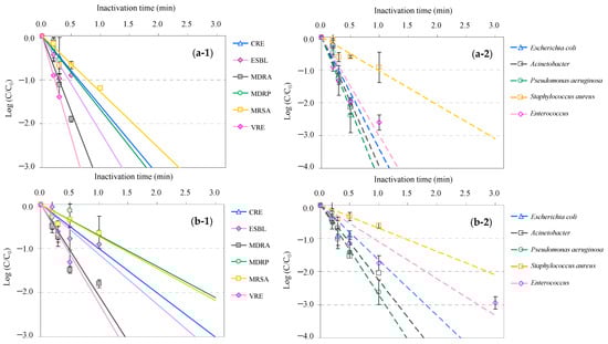 - Ma, B.; Seyedi, S.; Wells, E.; McCarthy, D.; Crosbie, N.; Linden, K.G. Inactivation of biofilm-bound bacterial cells using irradiation across UVC wavelengths. Water Res. 2022, 217, 118379. [Google Scholar] [CrossRef]