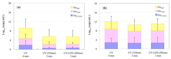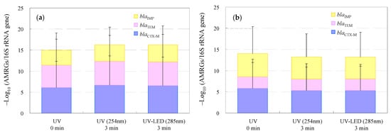 - Lee, J.; Jeon, J.H.; Shin, J.; Jang, H.M.; Kim, S.; Song, M.S.; Kim, Y.M. Quantitative and qualitative changes in antibiotic resistance genes after passing through treatment processes in municipal wastewater treatment plants. Sci. Total Environ. 2017, 605–606, 906–914. [Google Scholar] [CrossRef]