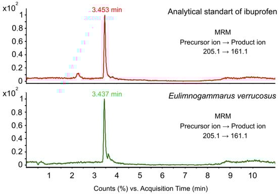 Chromatogram of ibuprofen detected in samples of amphipod E. verrucosus.