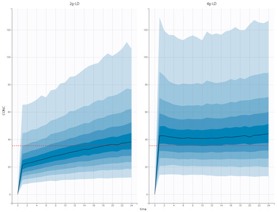 - El-Haffaf, I.; Guilhaumou, R.; Velly, L.; Marsot, A. Using a Validated Population Pharmacokinetic Model for Dosing Recommendations of Continuous Infusion Piperacillin for Critically Ill Adult Patients. Clin. Pharmacokinet. 2022, 61, 895–906. [Google Scholar] [CrossRef] [PubMed]