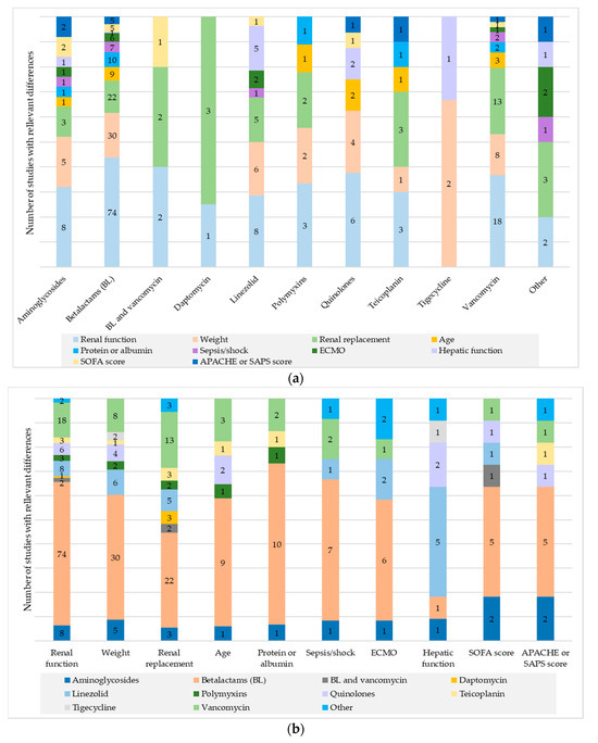 The information obtained on vancomycin was the second most abundant in terms of the number of studies, following beta-lactams. Compared to previous reviews [58], which primarily focused on age, weight, and renal function, our study has identified additional variables, such as severity scales, trauma diagnosis on admission, and hypoalbuminemia, as potential factors to consider for optimizing the dose of this drug.