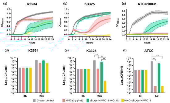- Pacios, O.; Fernández-García, L.; Bleriot, I.; Blasco, L.; González-Bardanca, M.; López, M.; Fernández-Cuenca, F.; Oteo, J.; Pascual, Á.; Martínez-Martínez, L.; et al. Enhanced Antibacterial Activity of Repurposed Mitomycin C and Imipenem in Combination with the Lytic Phage vB_KpnM-VAC13 against Clinical Isolates of Klebsiella pneumoniae. Antimicrob. Agents Chemother. 2021, 65, e0090021. [Google Scholar] [CrossRef] [PubMed]