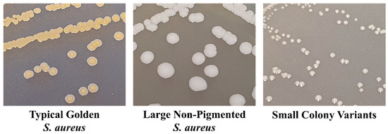 - Keim, K.C.; George, I.K.; Reynolds, L.; Smith, A.C. The Clinical Significance of Staphylococcus aureus Small Colony Variants. Lab. Med. 2023, 54, 227–234. [Google Scholar] [CrossRef]