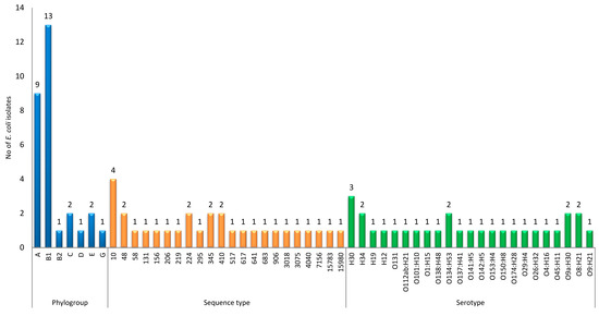 Phylogroups, sequence types, and serotypes of studied E. coli isolates.