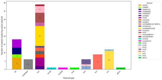 Number of studied E. coli isolates harboring certain plasmid types.