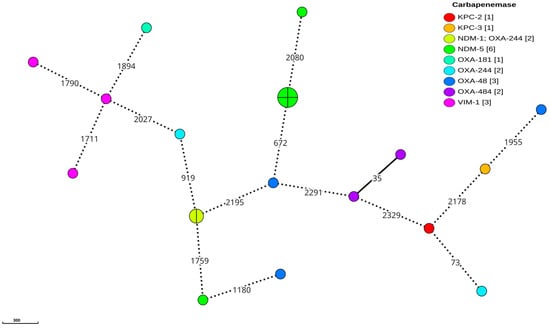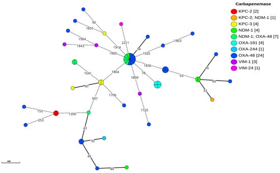 In 2017, the World Health Organization (WHO) published a priority list of pathogens to guide the research and development of new antibiotics, categorizing carbapenemase-producing Enterobacteriaceae (CPE) as a critical priority []. CPE cause difficult-to-treat infections, increase morbidity and mortality, and promote high transmissibility, thus necessitating their active surveillance. Additionally, their prevalence is high in certain countries, increasing the likelihood of transmission, particularly in hospital settings [].