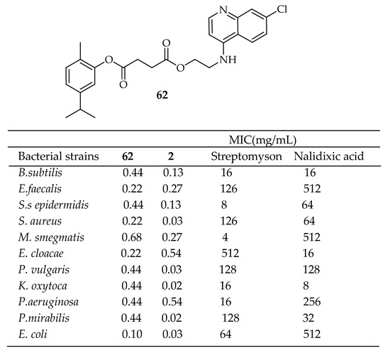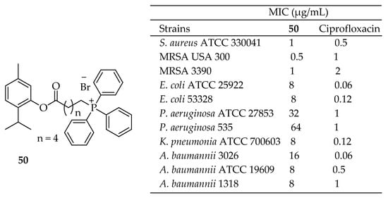 Chemical structure of compound 11 and its antibacterial outcomes [142].