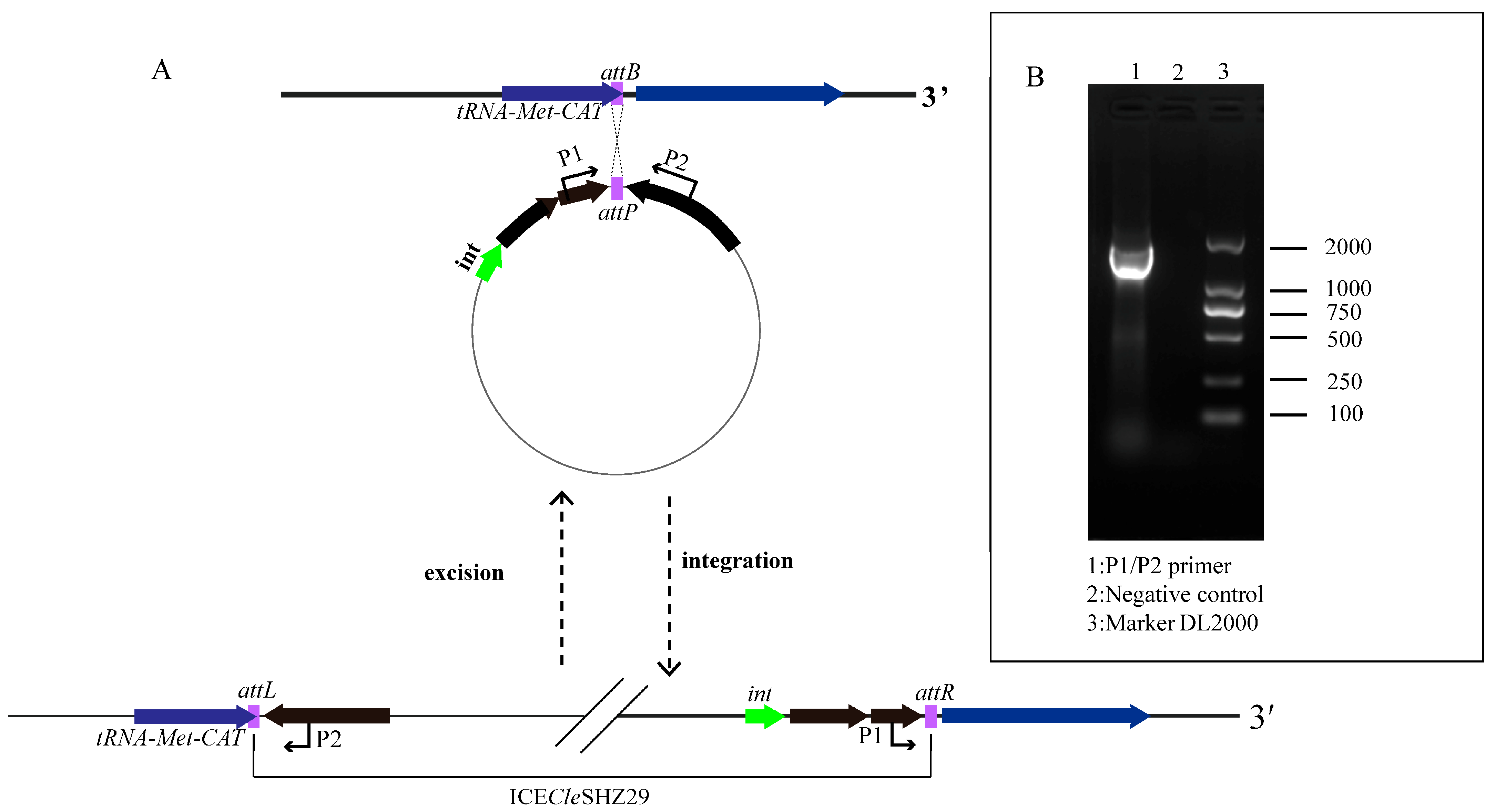 3.4. Detection of Circular Intermediates of ICECleSHZ29 and Conjugation Experiments