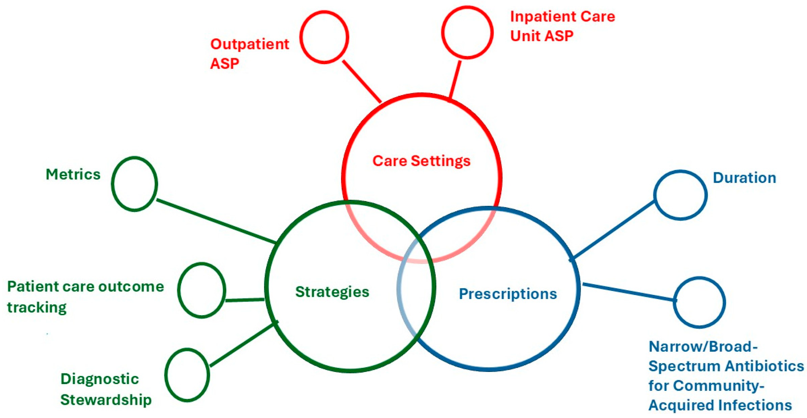 - Barlam, T.F.; Cosgrove, S.E.; Abbo, L.M.; MacDougall, C.; Schuetz, A.N.; Septimus, E.J.; Srinivasan, A.; Dellit, T.H.; Falck-Ytter, Y.T.; Fishman, N.O.; et al. Implementing an Antibiotic Stewardship Program: Guidelines by the Infectious Diseases Society of America and the Society for Healthcare Epidemiology of America. Clin. Infect. Dis. 2016, 62, e51–e77. [Google Scholar] [CrossRef]