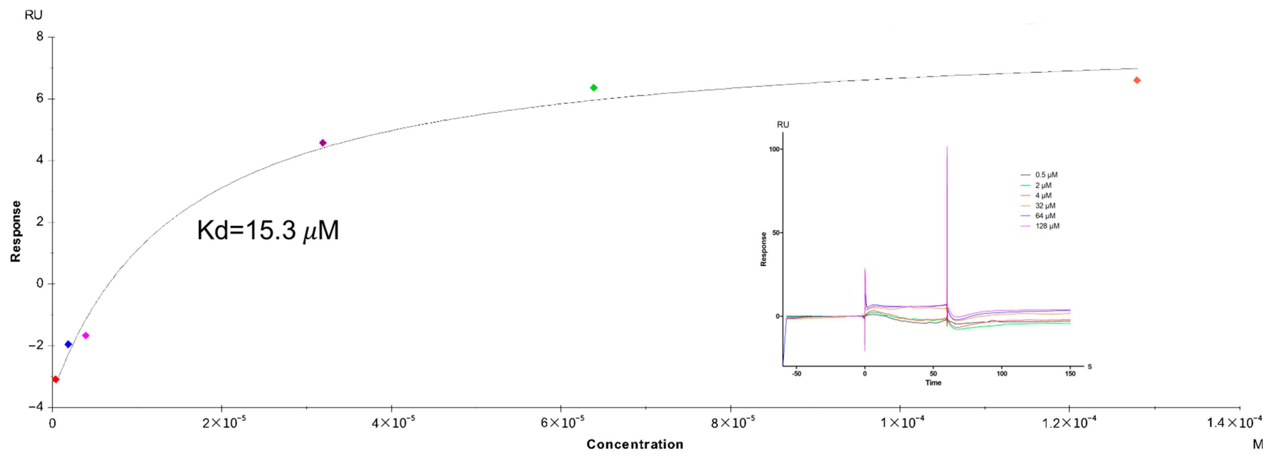 | Compound | KD (μM) | Rmax (RU) | Chi2 |