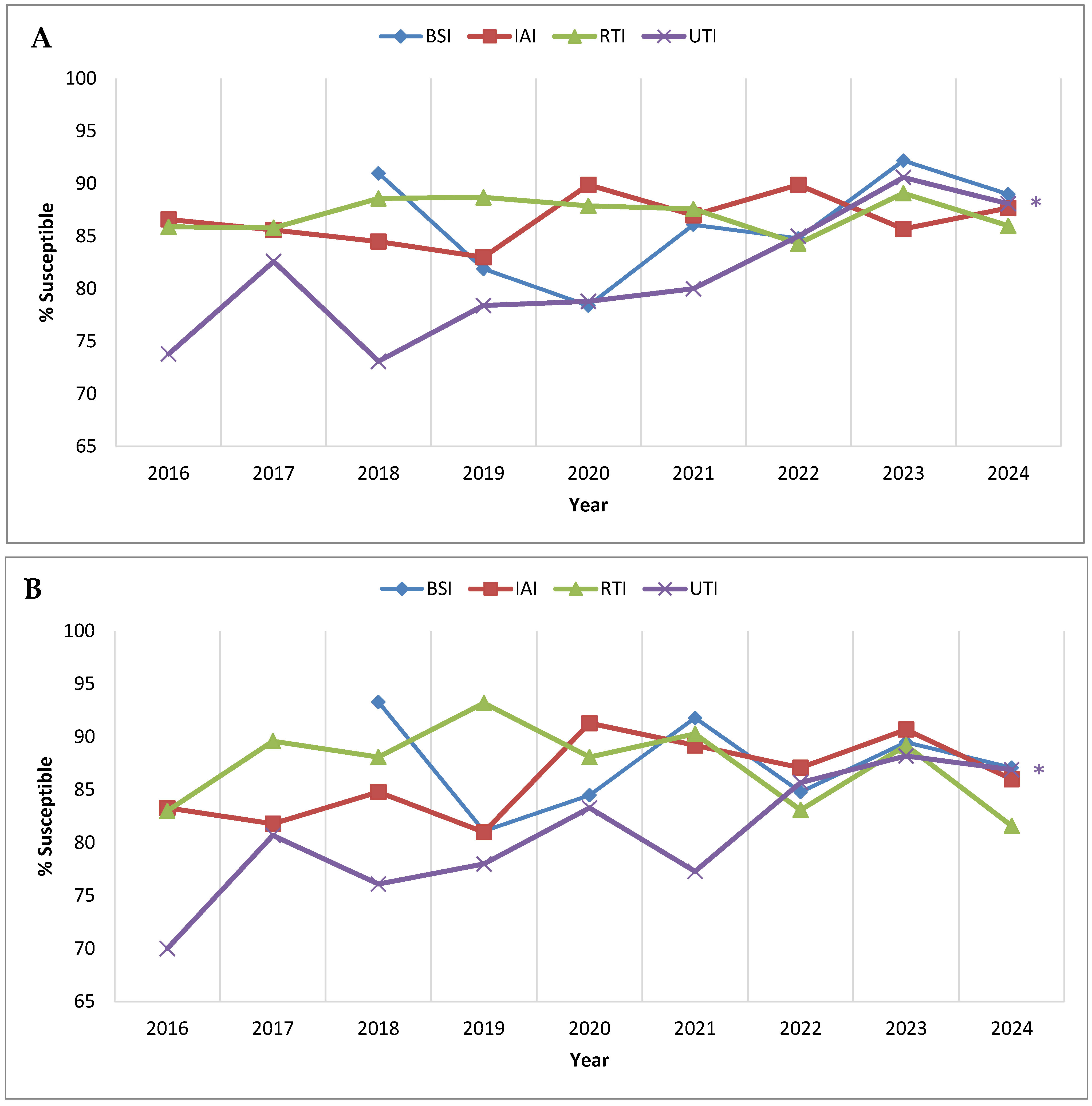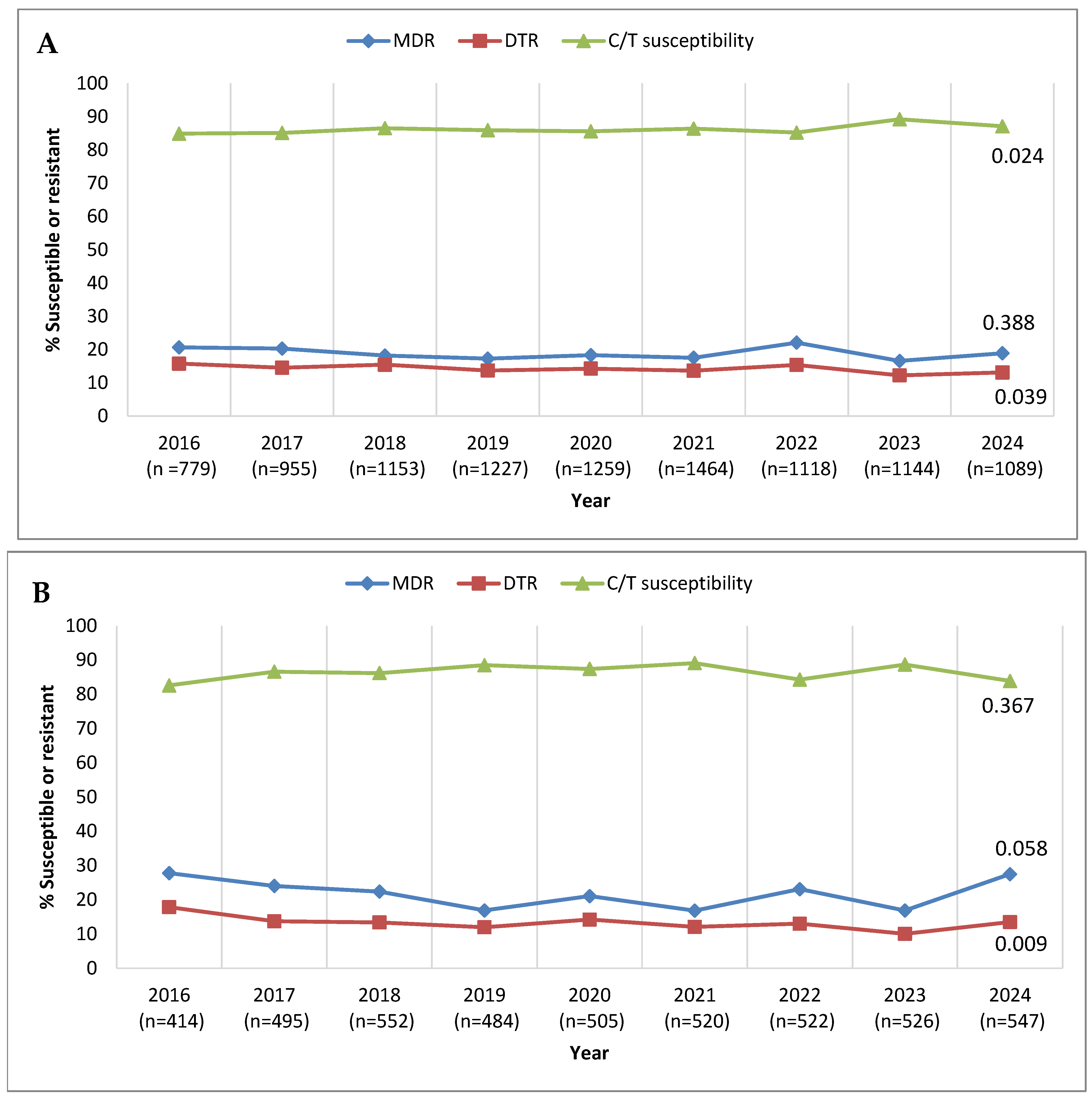 Trends in Pseudomonas aeruginosa In Vitro Susceptibility to Ceftolozane/Tazobactam in Latin America: SMART Surveillance Program, 2016–2024