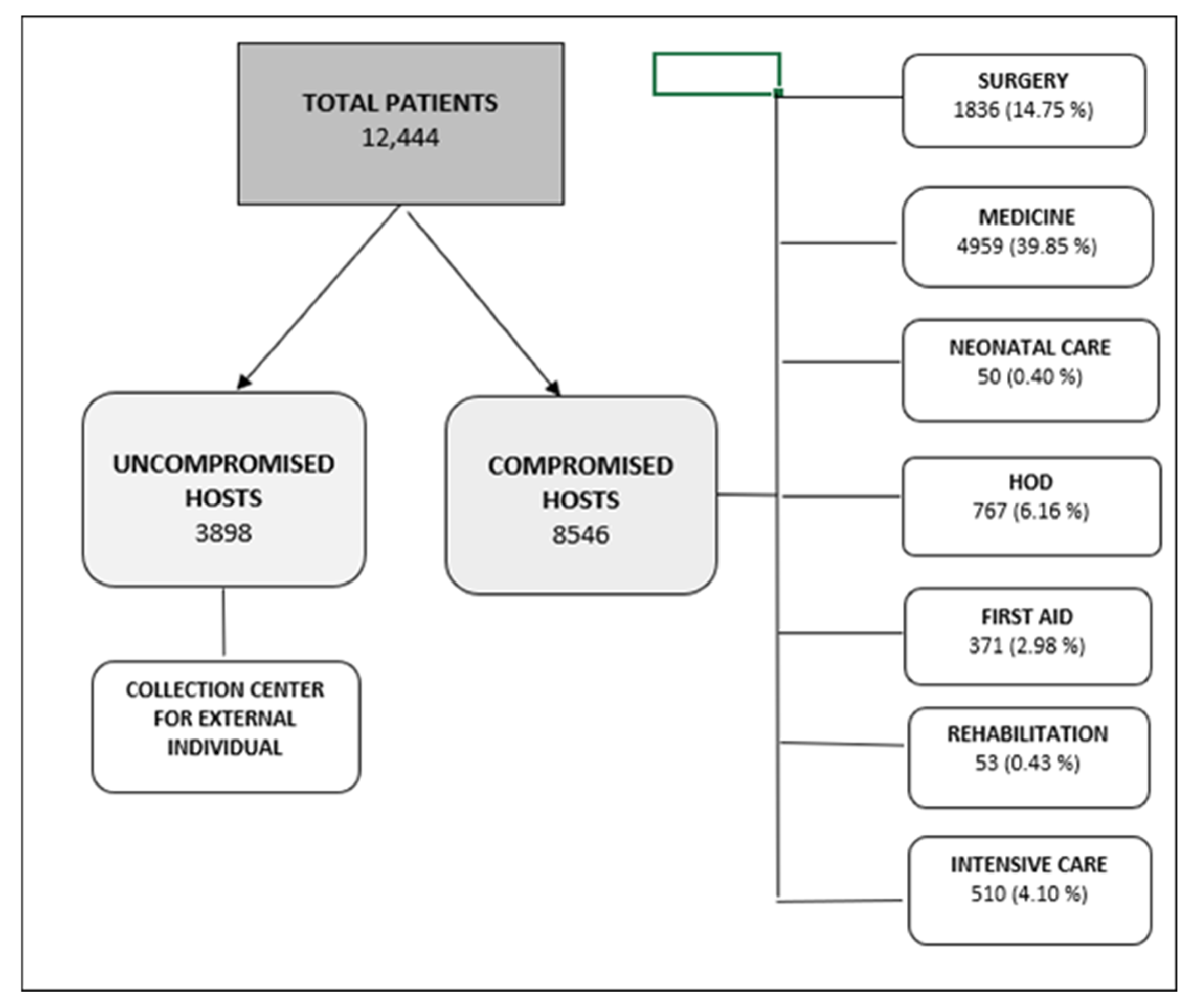 2.2. Microbial Genera and Species According to Types of Positive Cultures and Groups of Patients
