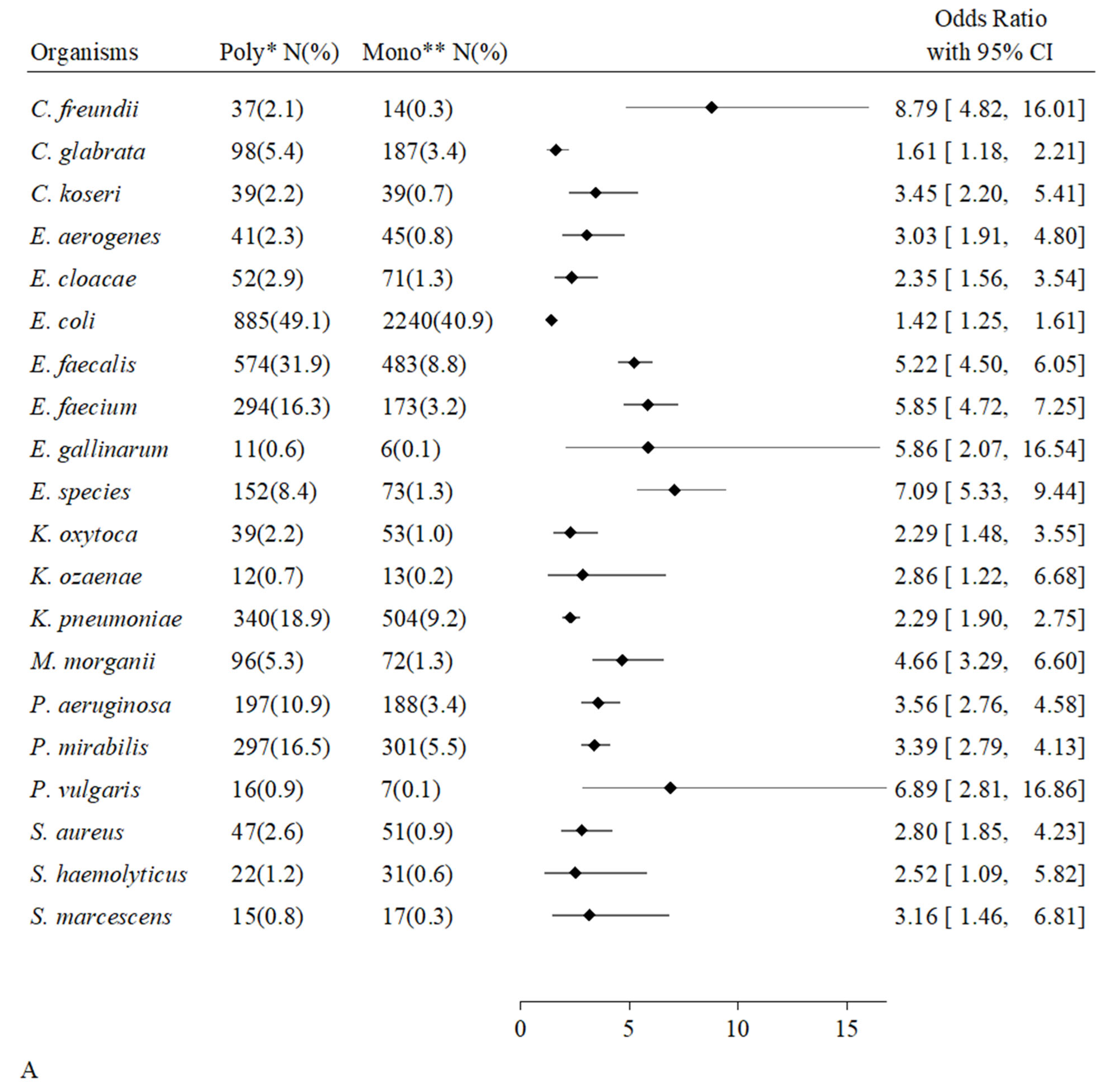 P. mirabilis | 598 | 8.21 | 29 | S. marcescens | 32 | 0.44 | 9 |