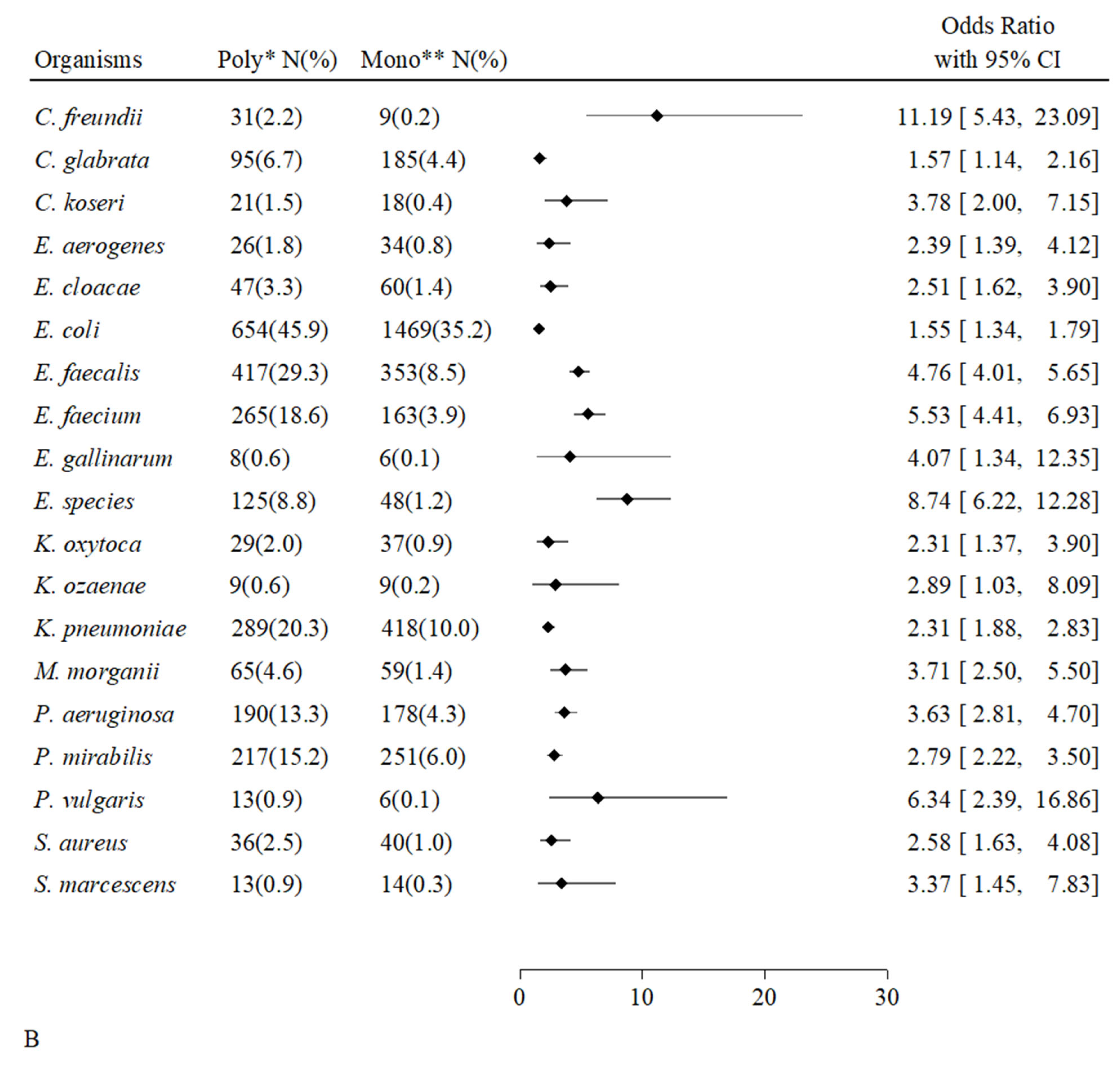 C. glabrata | E. faecium | 34 (35.8) | 231 (17.4) | 2.67 (1.48–4.79) |