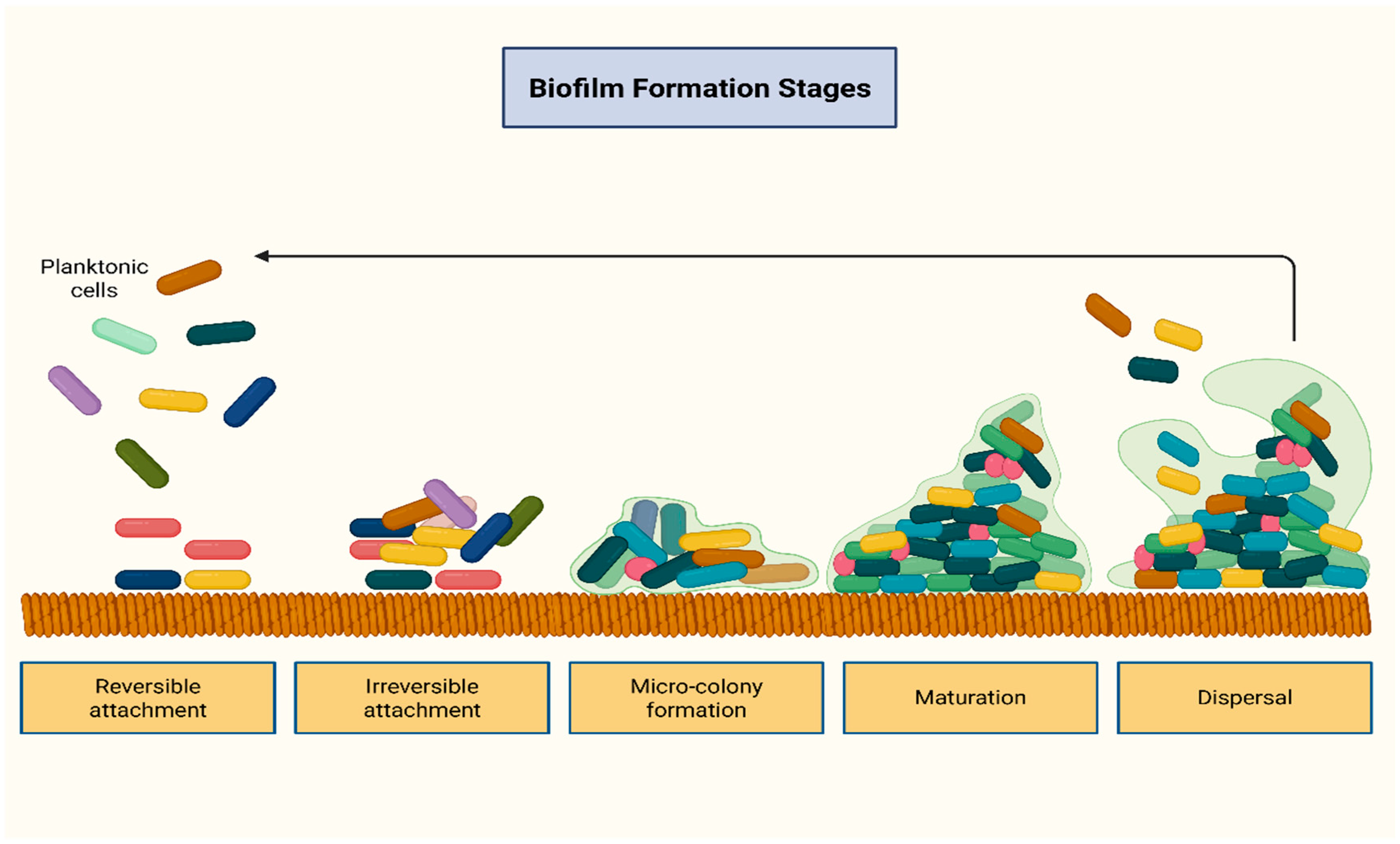 - Sharma, S.; Mohler, J.; Mahajan, S.D.; Schwartz, S.A.; Bruggemann, L.; Aalinkeel, R. Microbial Biofilm: A Review on Formation, Infection, Antibiotic Resistance, Control Measures, and Innovative Treatment. Microorganisms 2023, 11, 1614. [Google Scholar] [CrossRef]