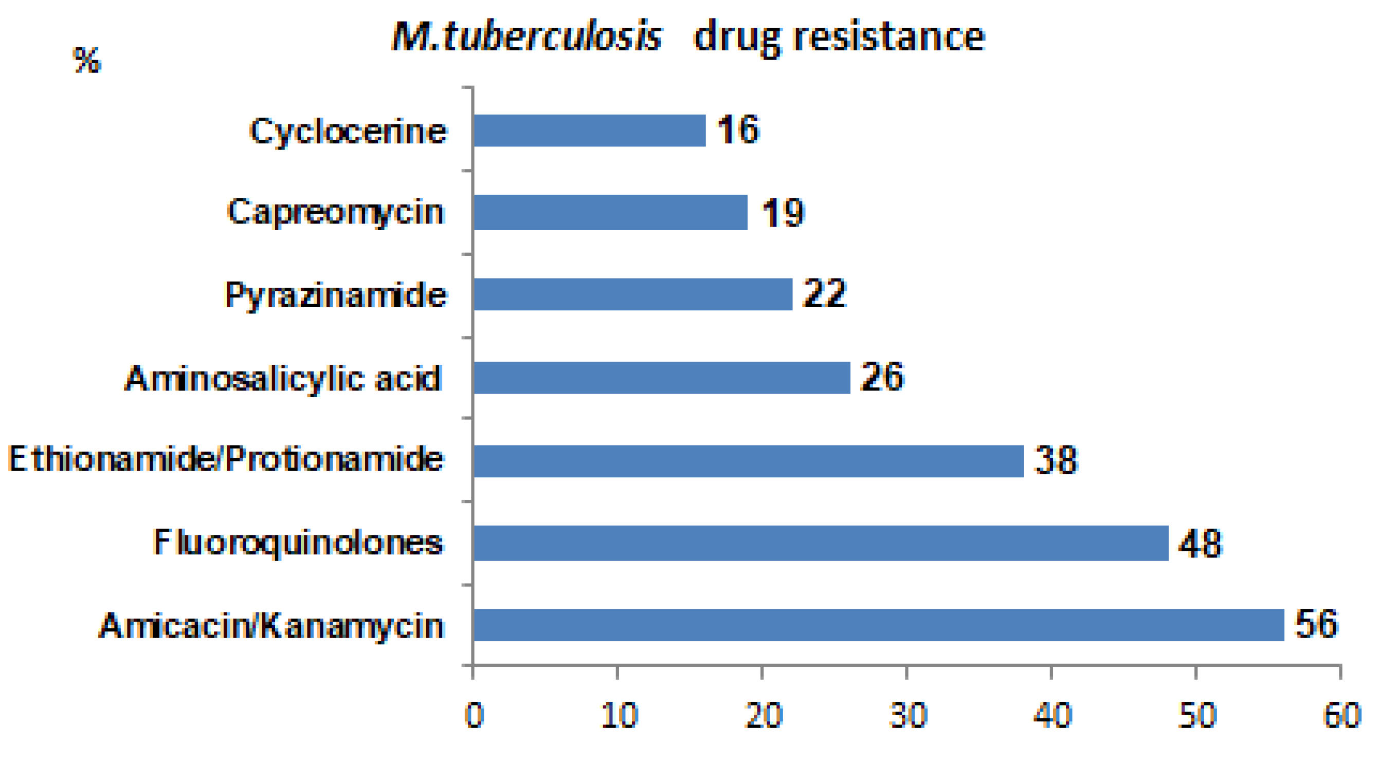 - Guglielmetti, L.; Veziris, N.; Aubry, A.; Brossier, F.; Bernard, C.; Sougakoff, W.; Jarlier, V.; Robert, J. Risk factors for extensive drug resistance in multidrug-resistant tuberculosis cases: A case-case study. Int. J. Tuberc. Lung. Dis. 2018, 22, 54–59. [Google Scholar] [CrossRef]