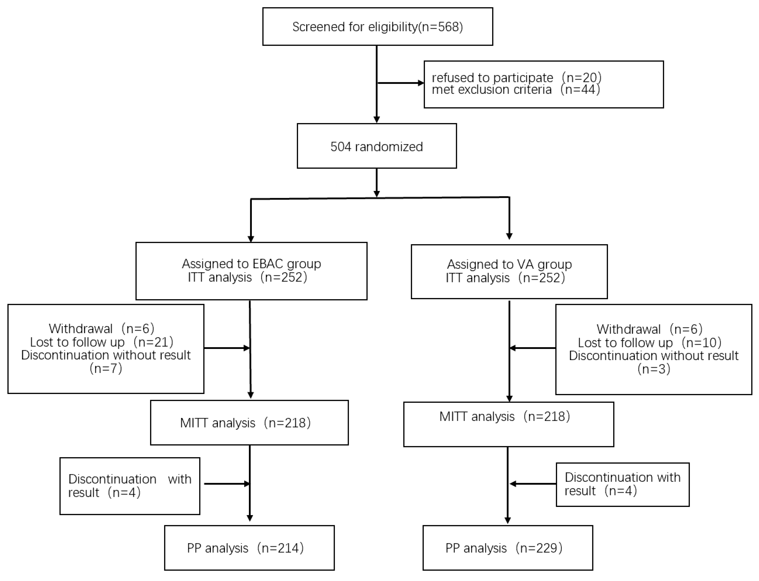 | EBAC (n = 252) | VA (n = 252) | p | ||