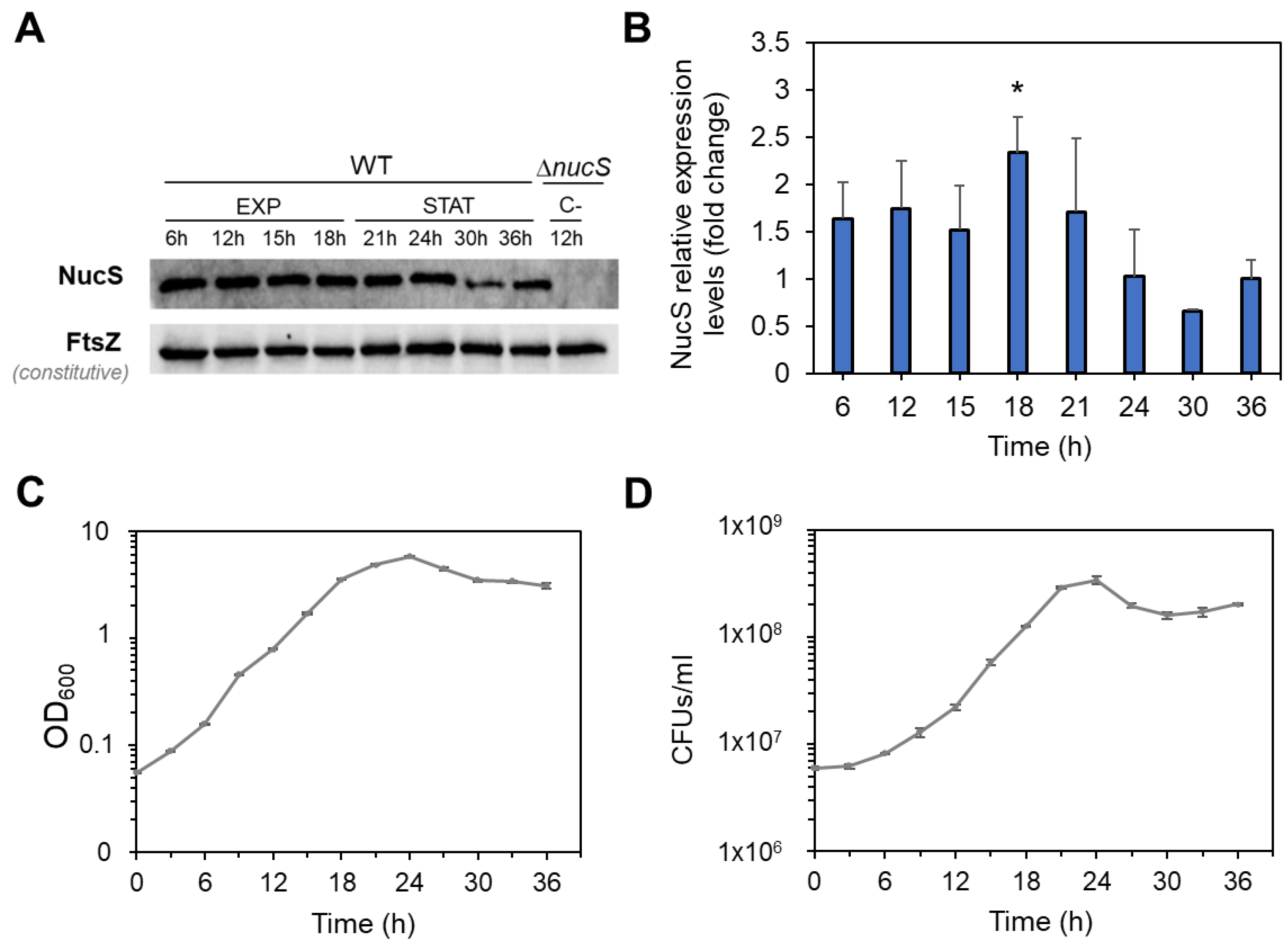 nucS across growth phases and examined the potential regulatory role of the sigma factor σ