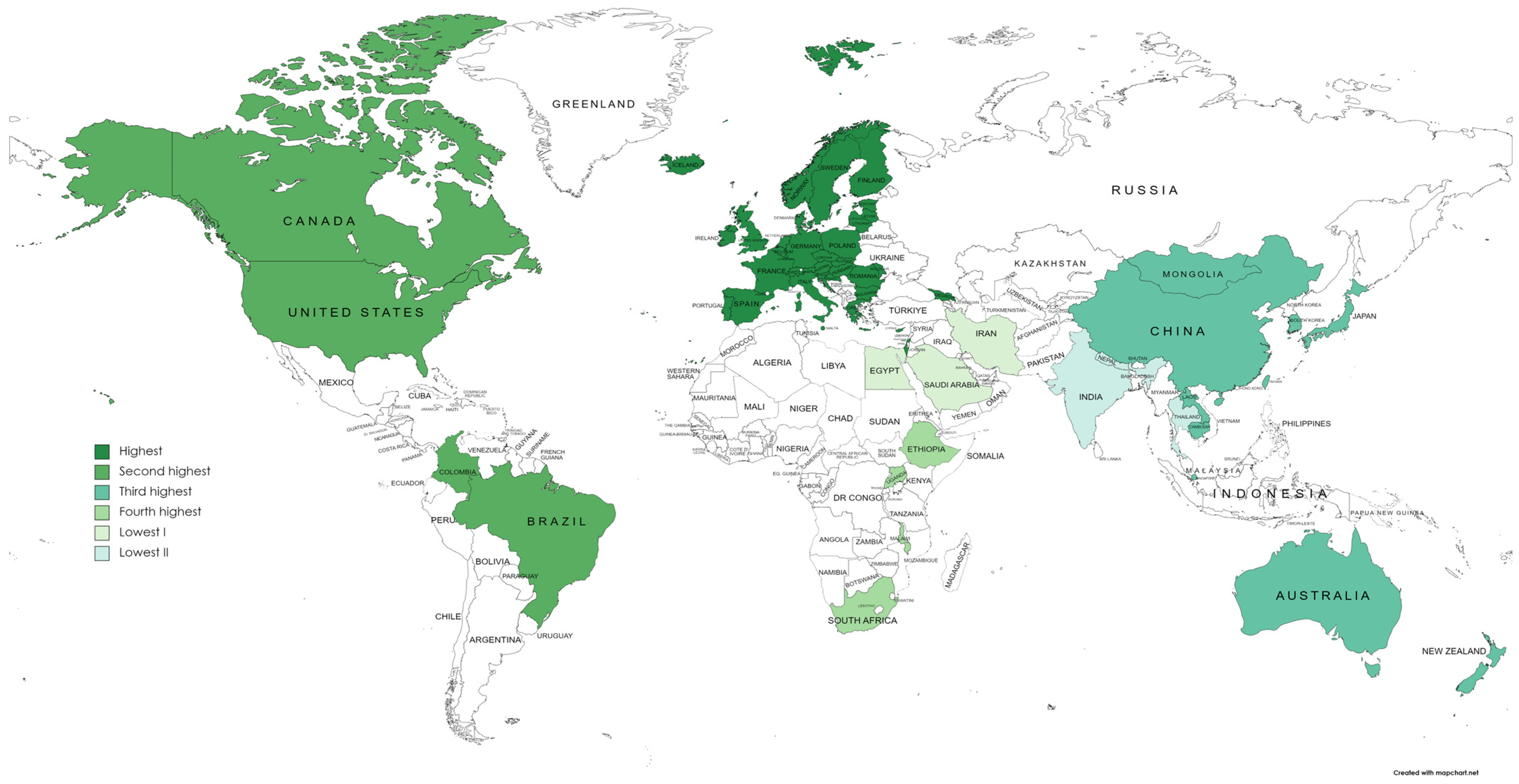 | High-income countries | 39 | 60.0 | 22 | 33.8 | 4 | 6.2 | 65 | 100 |