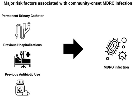 Matzaras R, Biros D, Sakkou SF, Lymperatou D, Filippas-Ntekouan S, Prokopidou A, Konstantopoulou R, Samanidou V, Athanasiou L, Christou A, et al. Risk Factors Associated with Community-Onset Infections Due to Multidrug-Resistant Organisms. Antibiotics. 2025; 14(11):1073. https://doi.org/10.3390/antibiotics14111073
