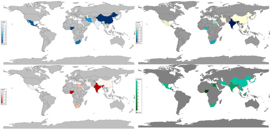 Figure 1 presents nation-specific Vm resistance burden (ARRI). Vm ARRI was particularly higher in Nigeria (7.78) and India (7.35), followed by Egypt (2.84), Bangladesh (2.80), and South Africa (2.13) and <1 in Malaysia, Mexico, Japan, China, Iran, Brazil, and Thailand. CVMRI was the highest in India (575) and the least in Thailand (5).