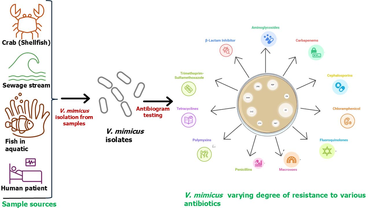 Ekundayo, T.C.; Tabit, F.T. Occurrence and Antibiotic Resistance Risk Burden of Vibrio mimicus Isolates from Seafood and Aquatic Environments. Antibiotics 2025, 14, 1075. https://doi.org/10.3390/antibiotics14111075