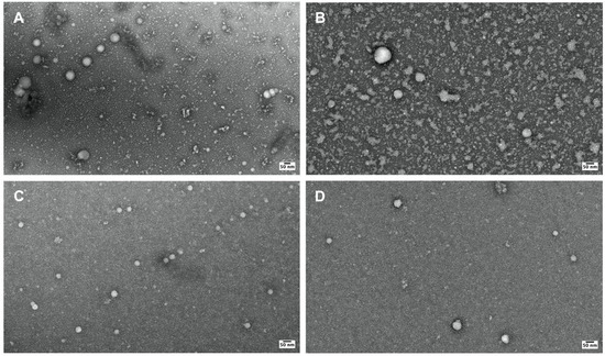 Transmission electron microscopy (TEM) was performed by Yale’s Electron Microscopy Facility. The negative staining of Bb-OMVs performed was similar to previously described methods [17]. The purified exosomes were diluted 1:20 in 1× PBS (pH 7.4). Then, a 7 µL droplet of the diluted sample was placed on a piece of parafilm and a glow-discharged 400 mesh carbon-coated Copper grid was placed on top of the droplet. This grid was incubated for 1 min. The remaining solution was gently blotted off the grid with a wedge of filter paper. This grid was then transferred to another 7 µL droplet of 2% uranyl acetate (aqueous) and incubated for another minute. The excess solution on the grid was gently blotted off again using a wedge of filter paper and the grid was allowed to air dry. The grids were imaged on a Tecnai G2 Spirit BioTWIN Transmission Electron Microscope (ThermoFisher Scientific, Hillsboro, OR, USA), which was operated at 80 kV. The TEM micrographs were acquired using a NanoSprint15 MKII camera (AMT Imaging, Woburn, MA, USA).