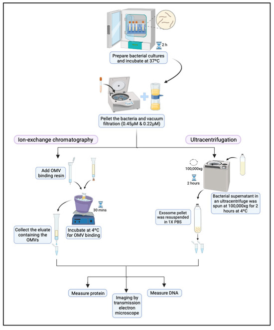 - Klimentová, J.; Stulík, J. Methods of Isolation and Purification of Outer Membrane Vesicles from Gram-negative Bacteria. Microbiol. Res. 2015, 170, 1–9. [Google Scholar] [CrossRef]