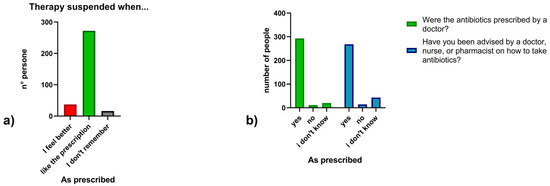 (a) Timing of antibiotic therapy suspension; (b) Medical prescription and counseling on antibiotic use.