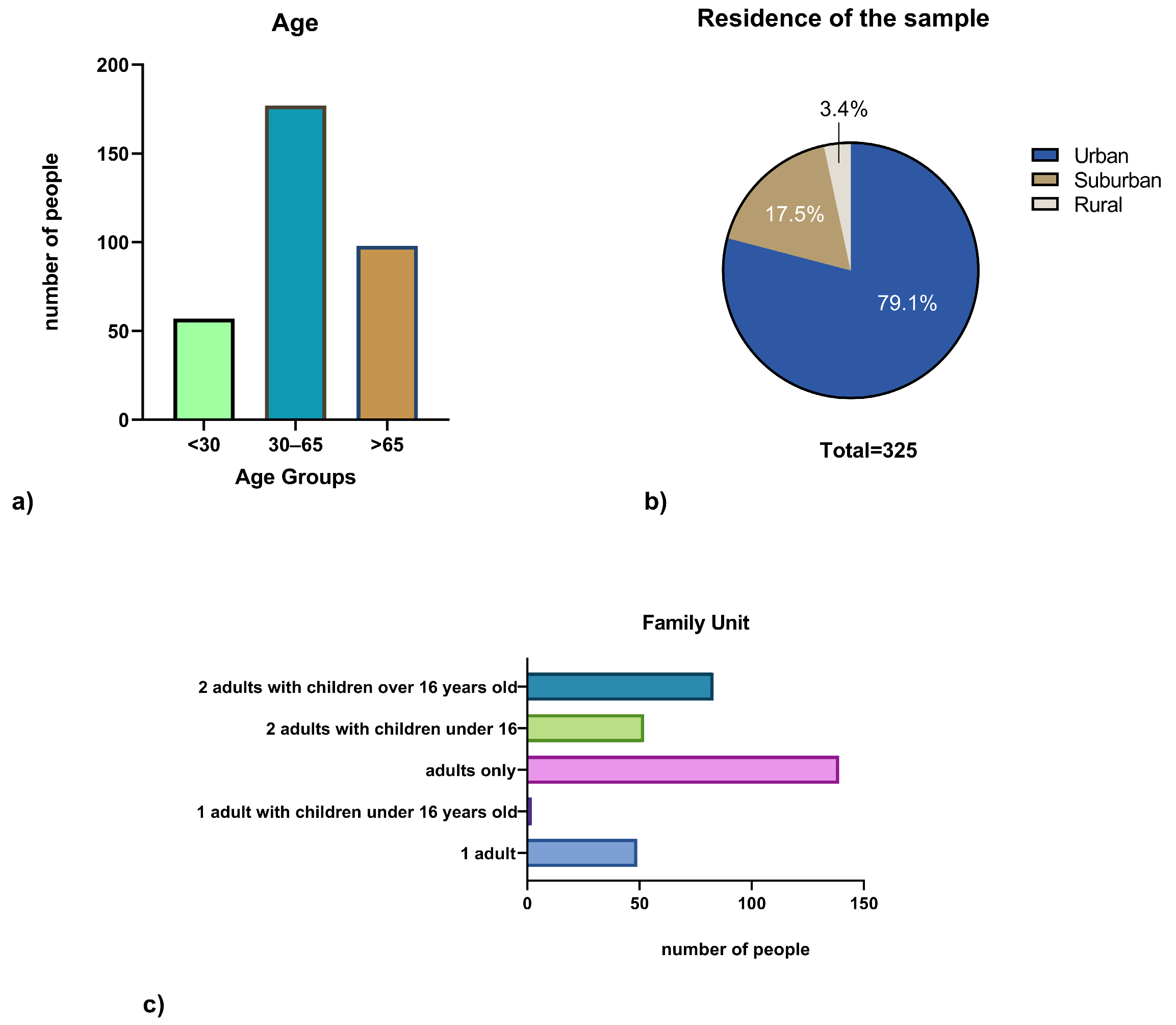 - Personal and socio-demographic section: collection of information on age, gender, place of residence and family composition;