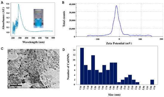 - Kausar, H.; Mehmood, A.; Khan, R.T.; Ahmad, K.S.; Hussain, S.; Nawaz, F.; Iqbal, M.S.; Nasir, M.; Ullah, T.S. Green synthesis and characterization of copper nanoparticles for investigating their effect on germination and growth of wheat. PLoS ONE 2022, 17, e0269987. [Google Scholar] [CrossRef]
