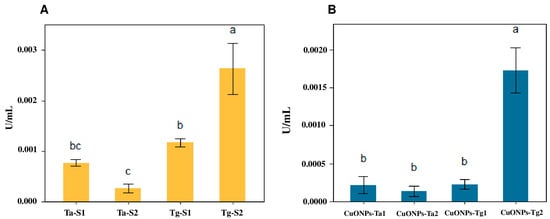| CuONPs-Tg1 | 41.66 ± 14.4 | 58.33 ± 7.6 | 46.6 ± 7.6 | 73.33 ± 2.8 | 98.33 ± 2.8 |