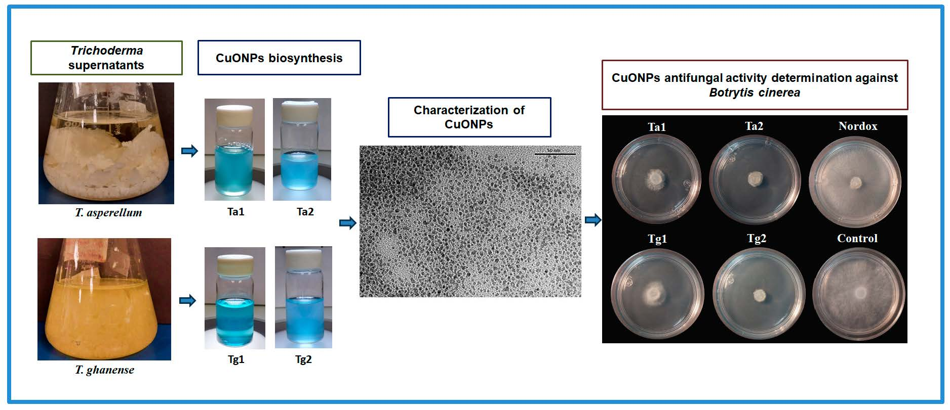 - Martínez-Soto, D.; Campos-Jiménez, E.; Cabello-Pasini, A.; Garcia-Marin, L.E.; Meza-Villezcas, A.; Castro-Longoria, E. Evaluation of Fungal Sensitivity to Biosynthesized Copper-Oxide Nanoparticles (CuONPs) in Grapevine Tissues and Fruits. J. Fungi 2025, 11, 719. [Google Scholar] [CrossRef] [PubMed]