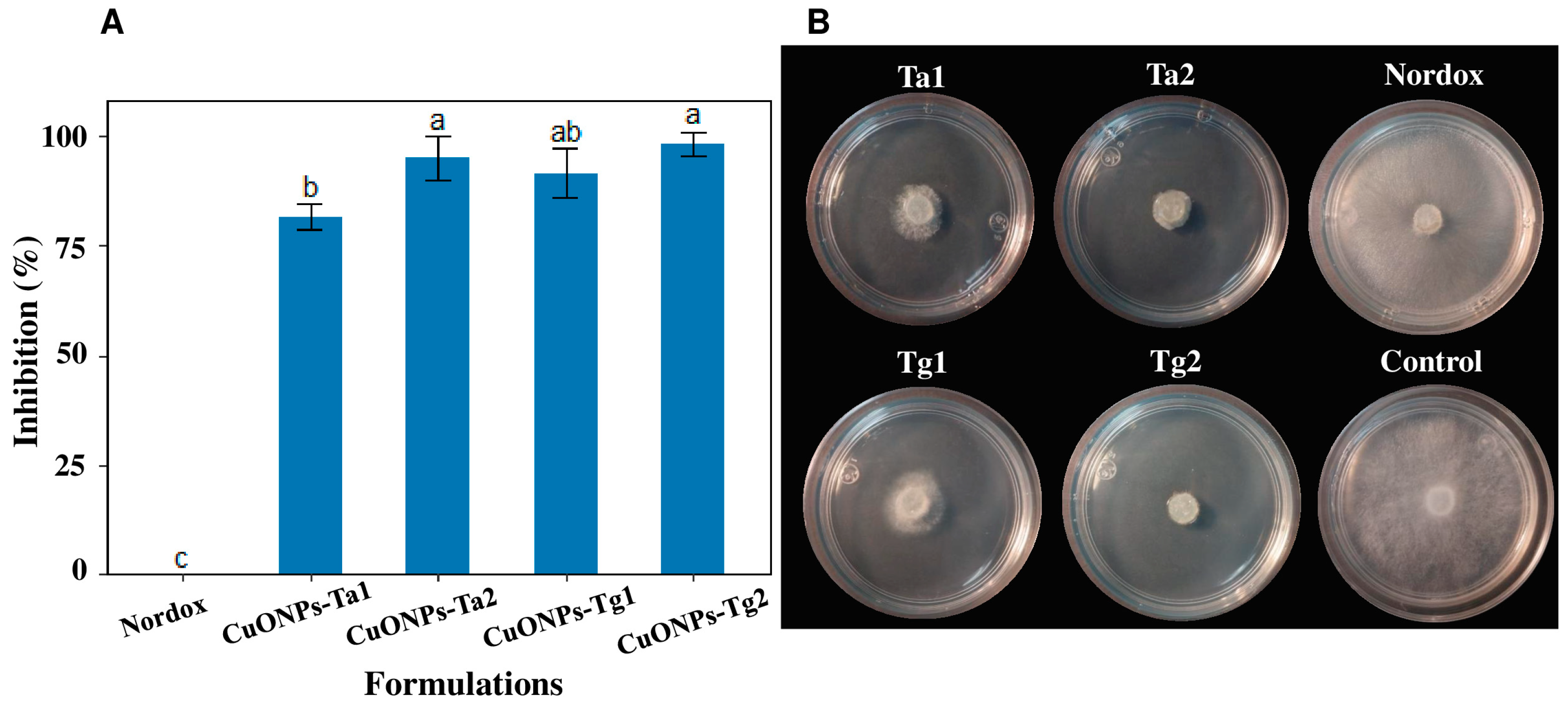 2.4. Antifungal Properties of CuONPs Against B. cinerea CDBBH1556
